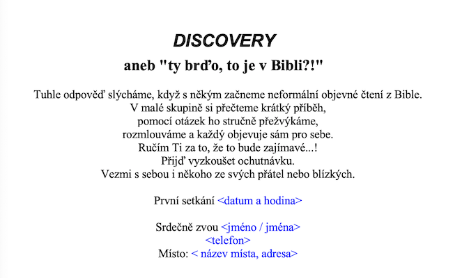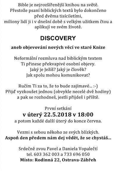 Jeden bratr nám napsal otázku: Máte vyzkoušené nějaké vizitky nebo pozvánky na Discovery k rozdáváni? Při naší službě na ulici to začíná být aktuální…